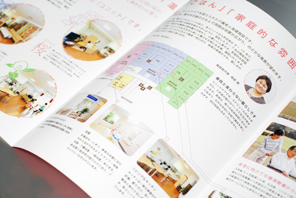 施設案内パンフレットの制作をご依頼いただきました。「安心」「アットホームさ」などを表現するために、